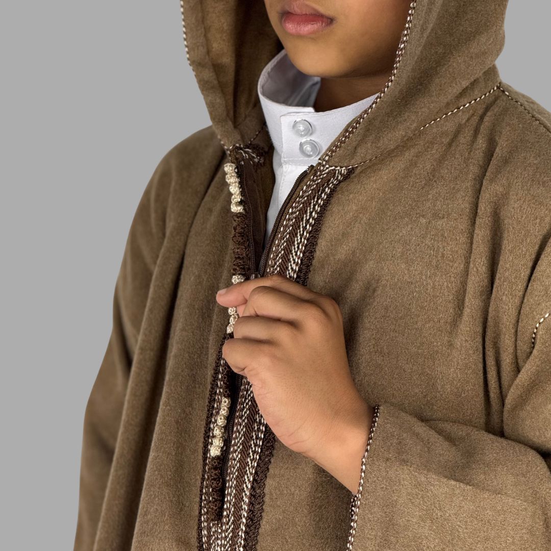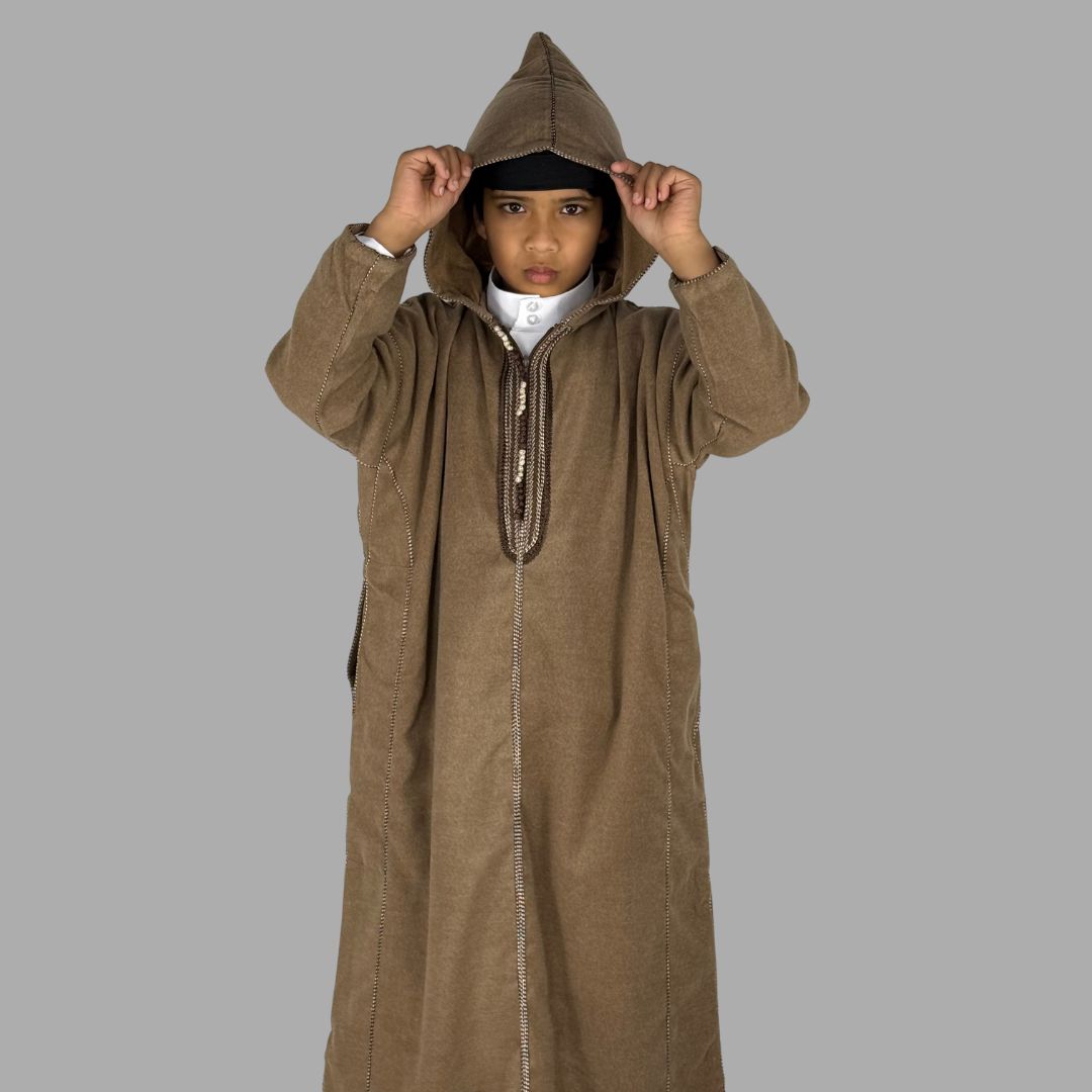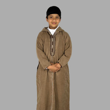 Boys Premium Light Brown Hooded Moroccan Thobe