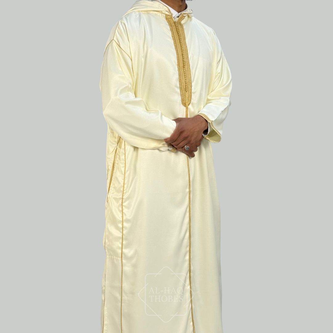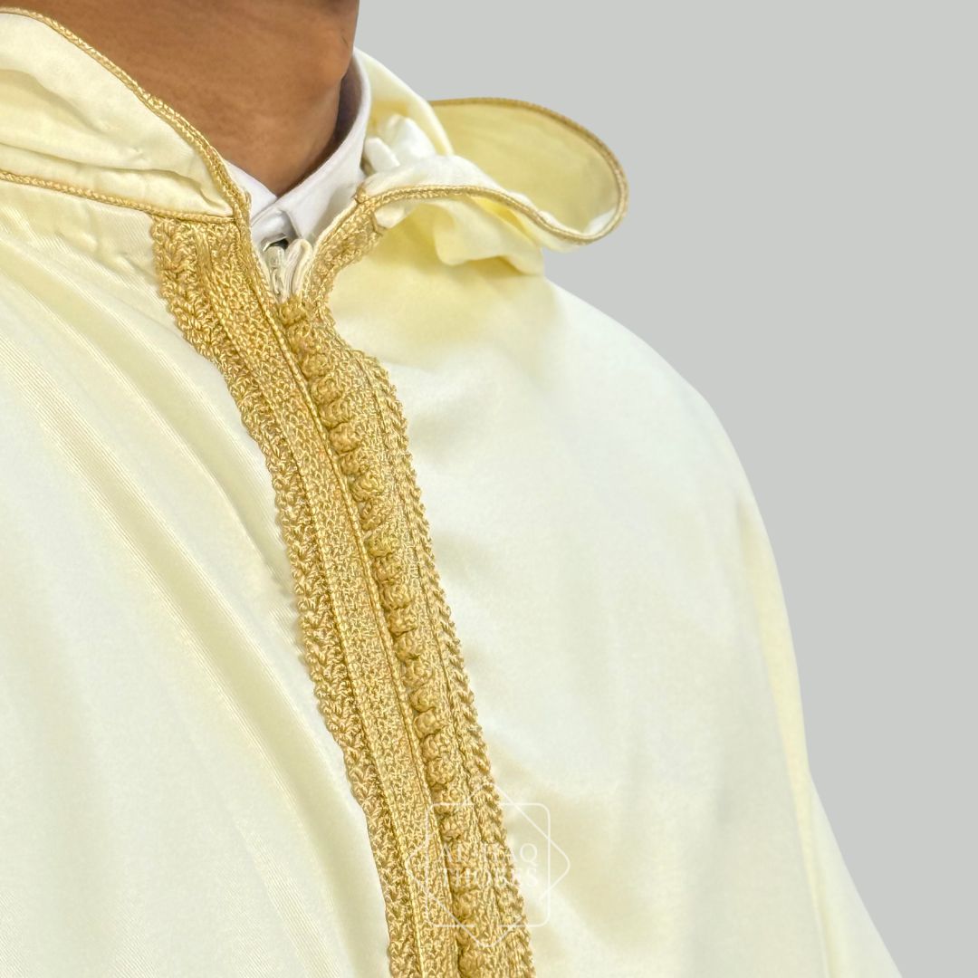 Royal Lightweight Cream & Gold Hooded Djellaba