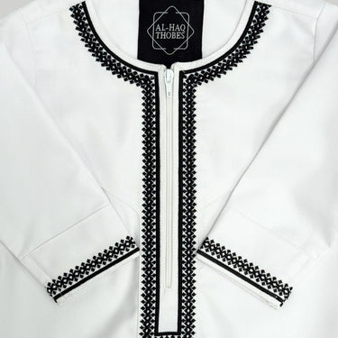 Toddler Luxury White & Black Embroidered Omani Thobe