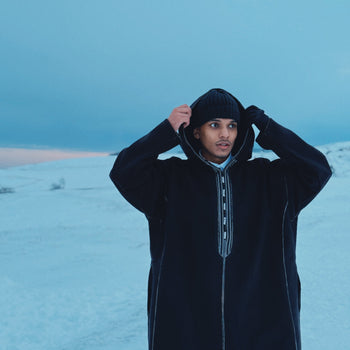 Featuring an exceptional wool blend with a smooth front zip, two pockets, intricate embroidery, and a distinctive hood, they blend cultural heritage with modern refinement.