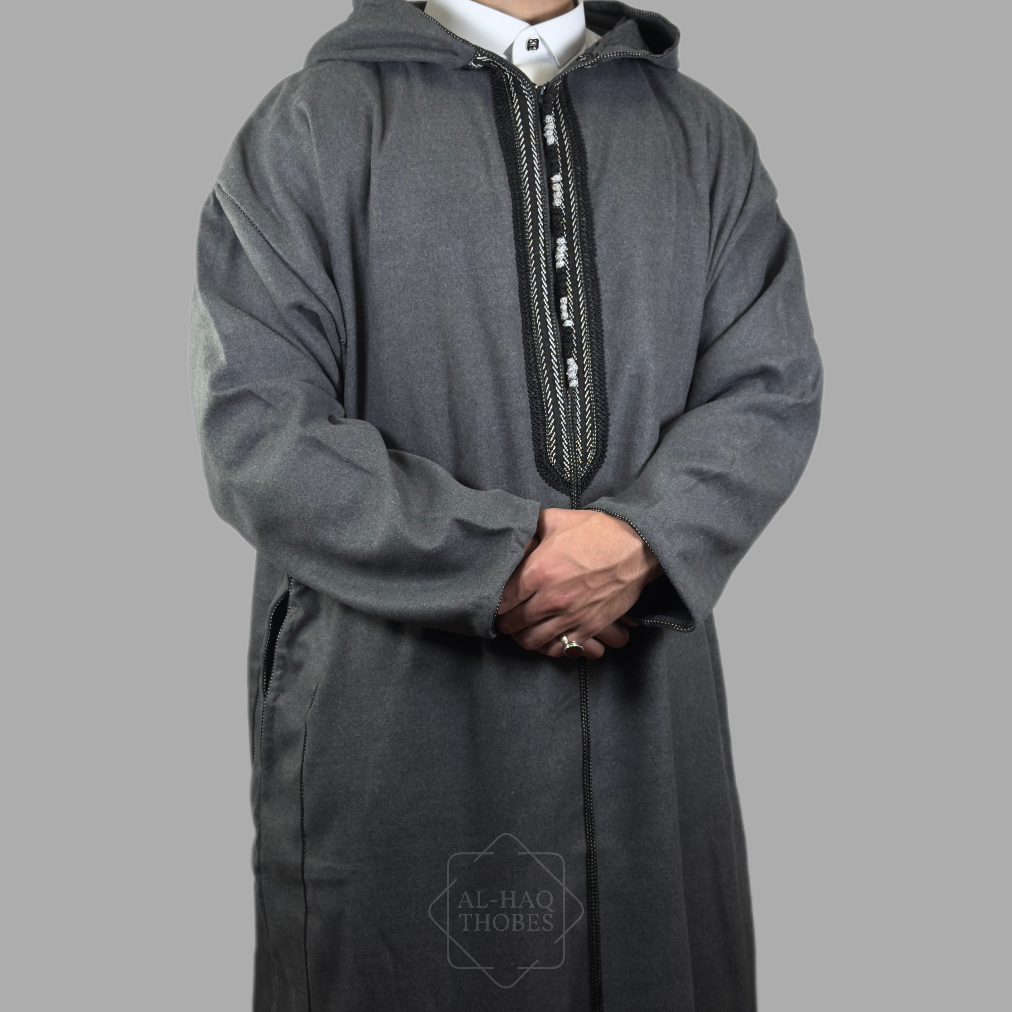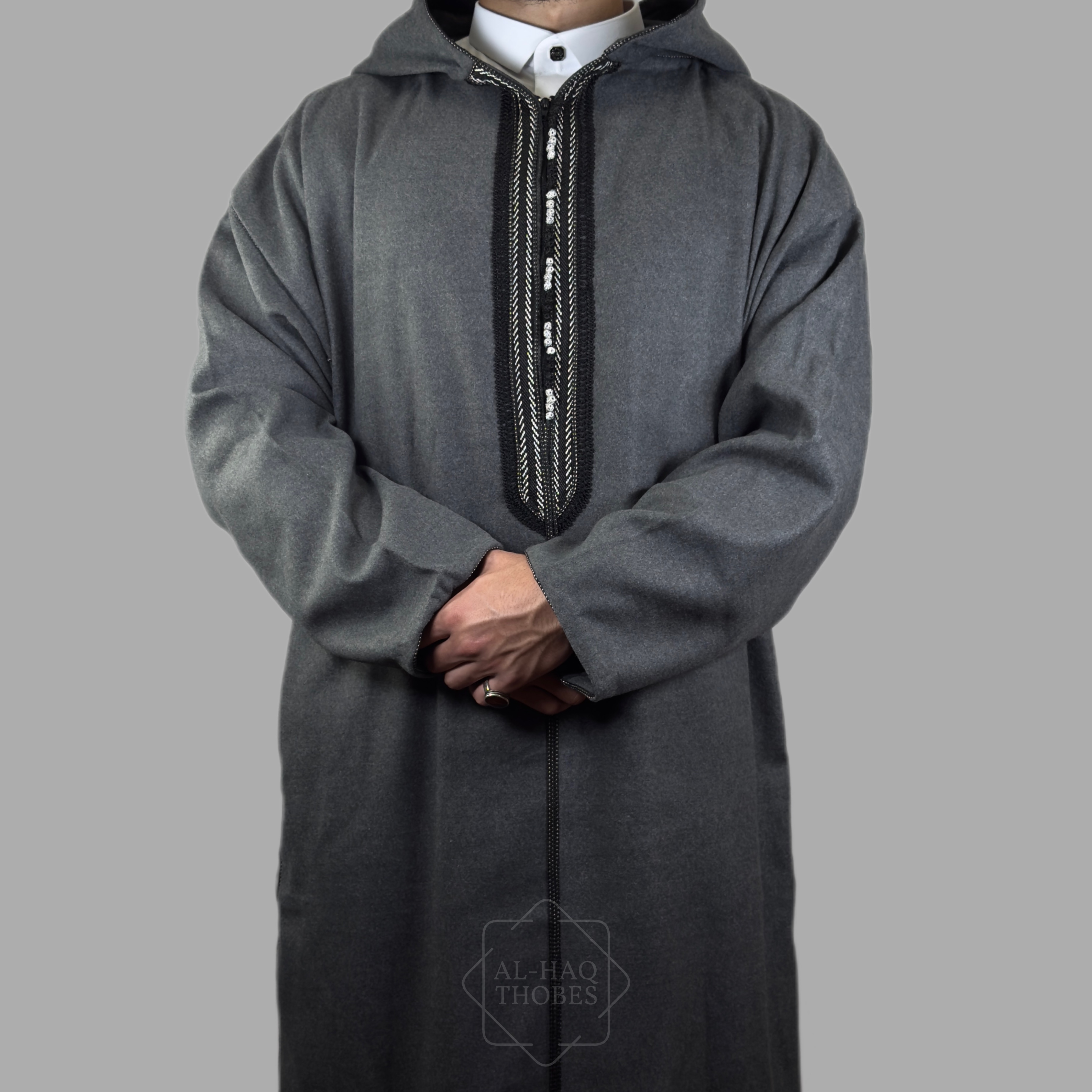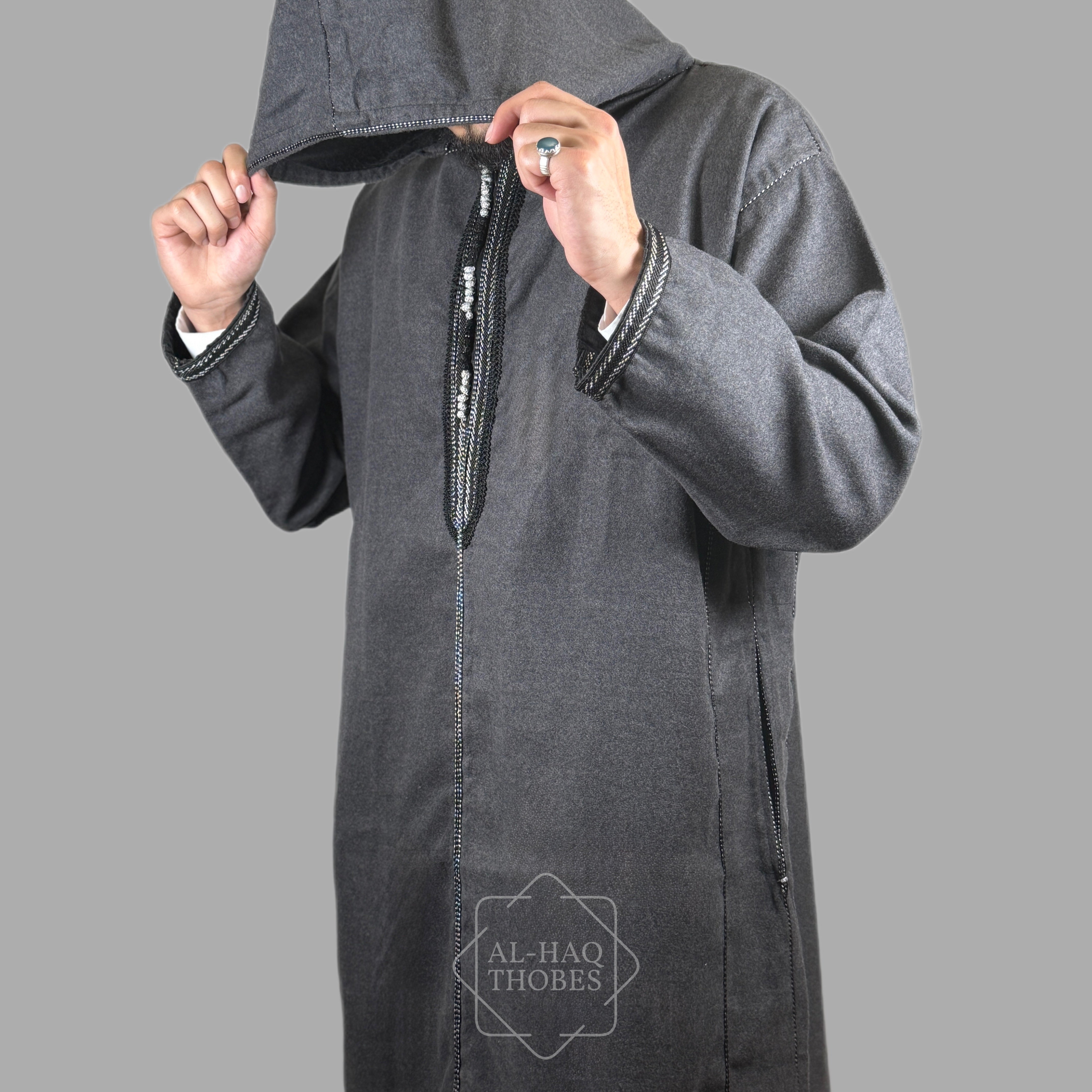 Luxury Storm Grey Hooded Moroccan Thobe