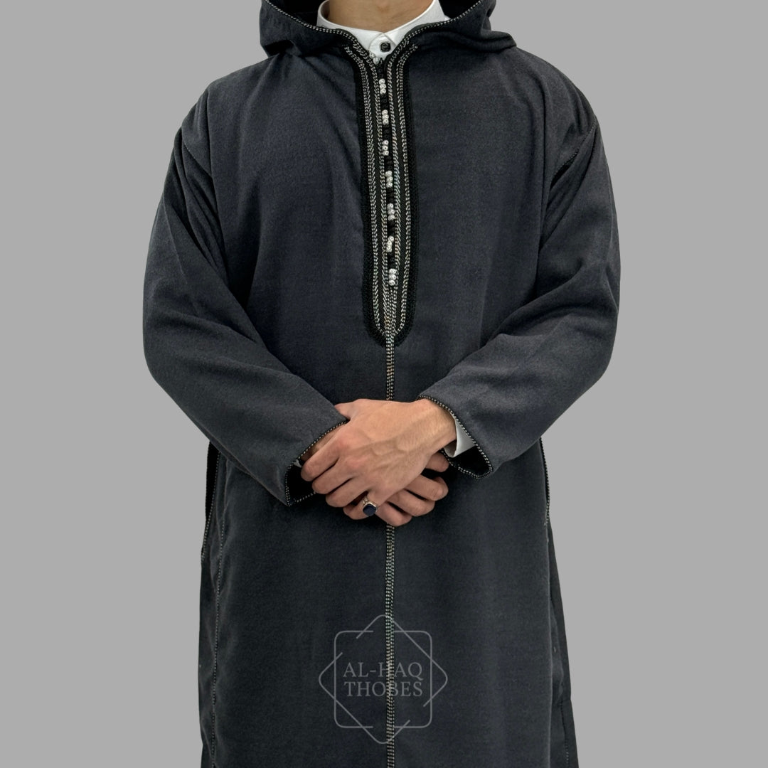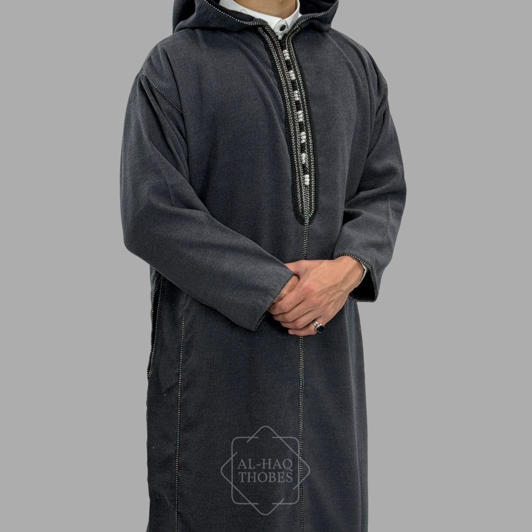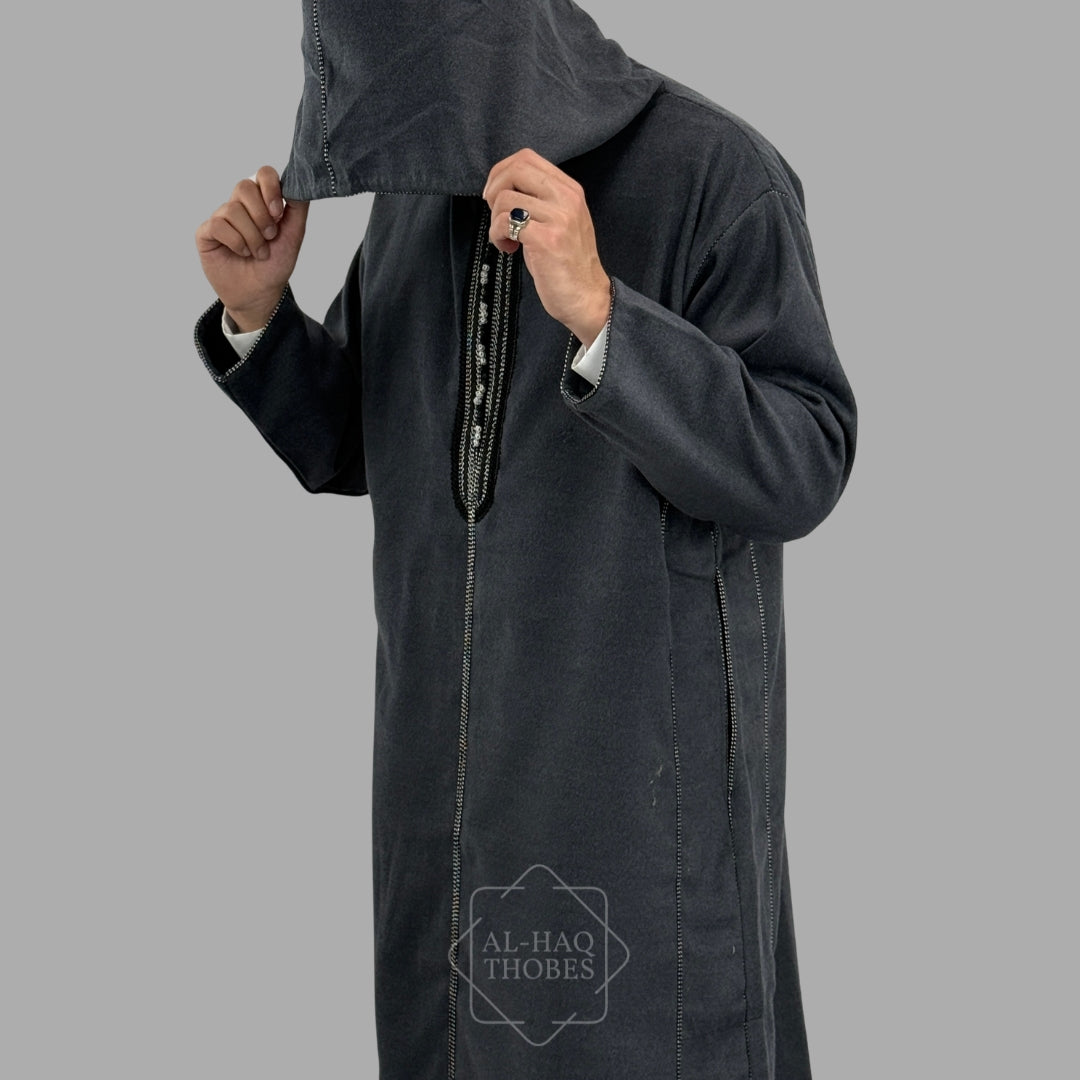 Premium Charcoal Grey Hooded Moroccan Thobe