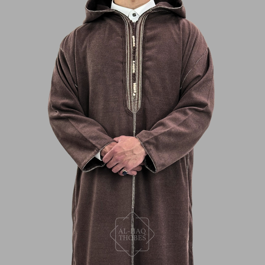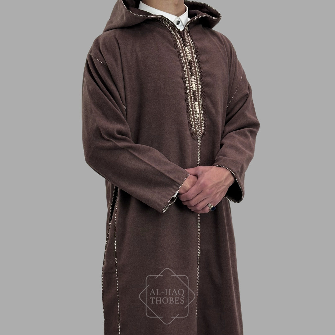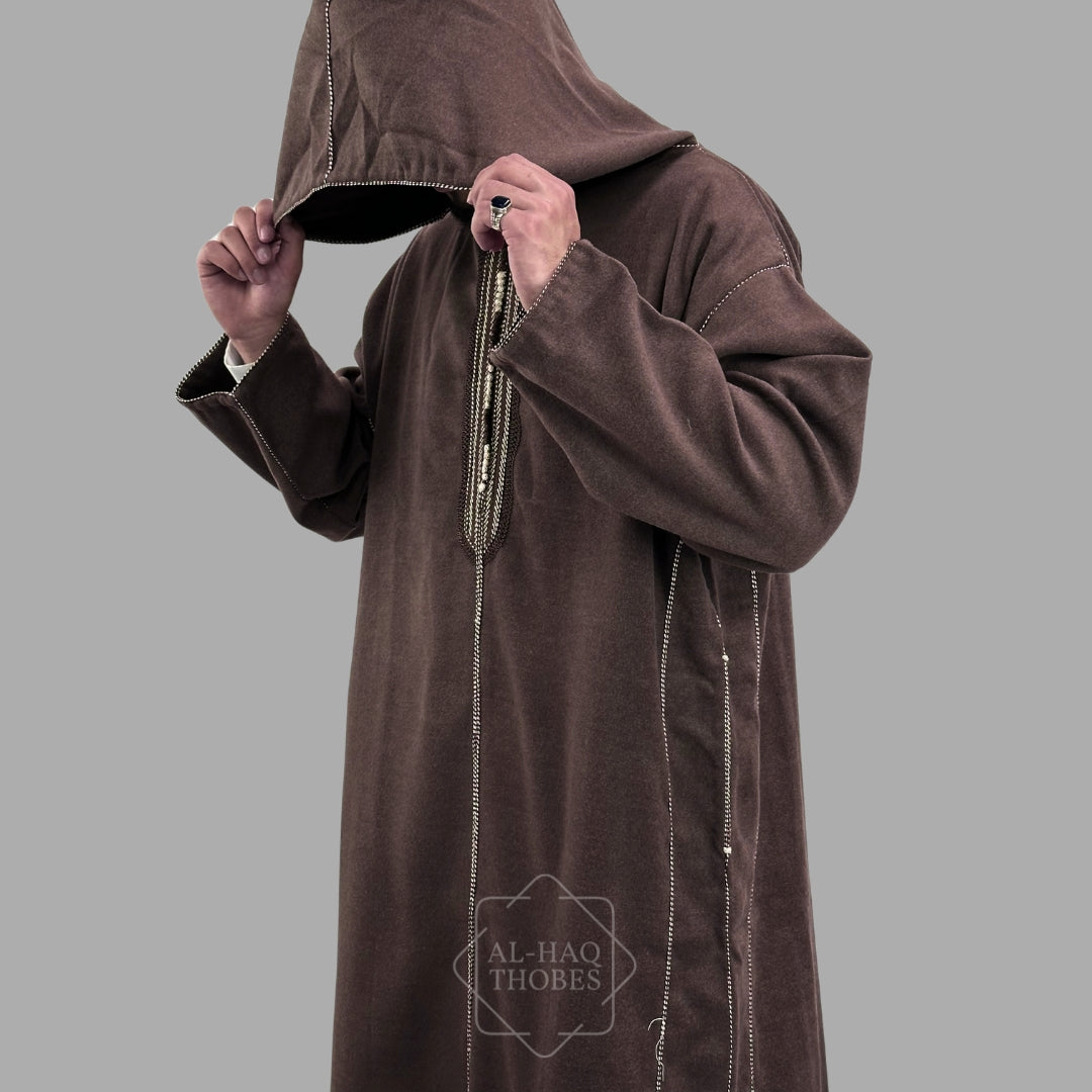 Premium Chocolate Brown Hooded Moroccan Thobe