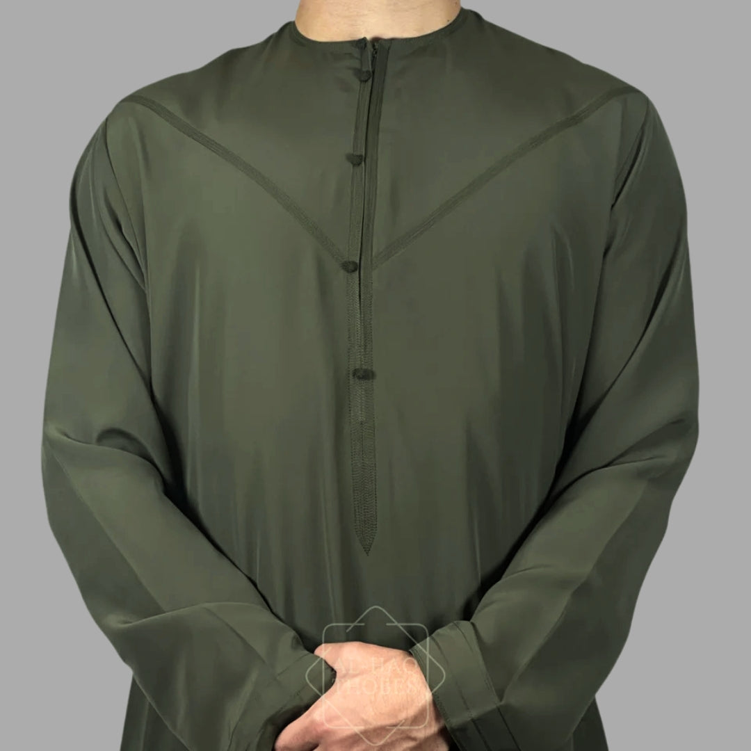 Luxury Olive Green Lightweight Emirati Zibda Thobe