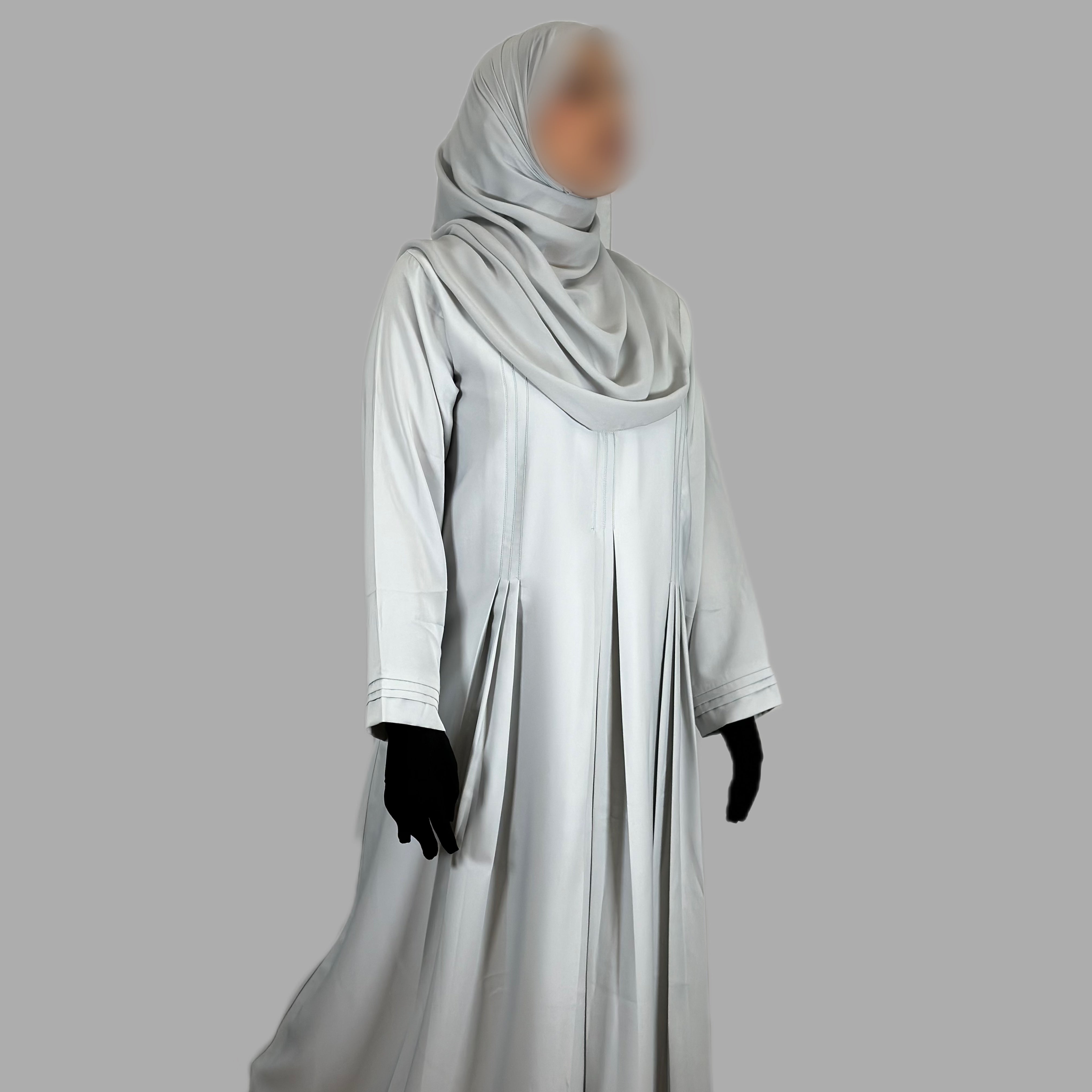 Al-Haq Hayaat Light Grey Closed Pleated Abaya