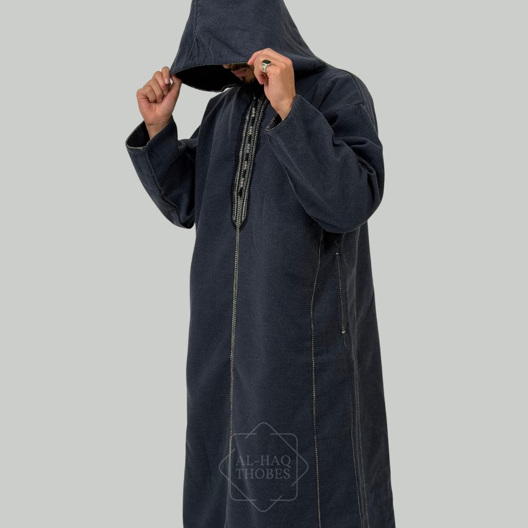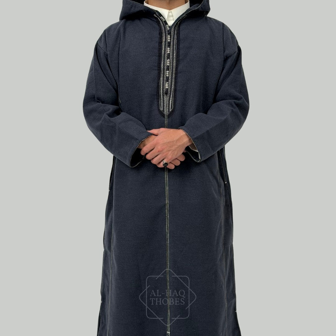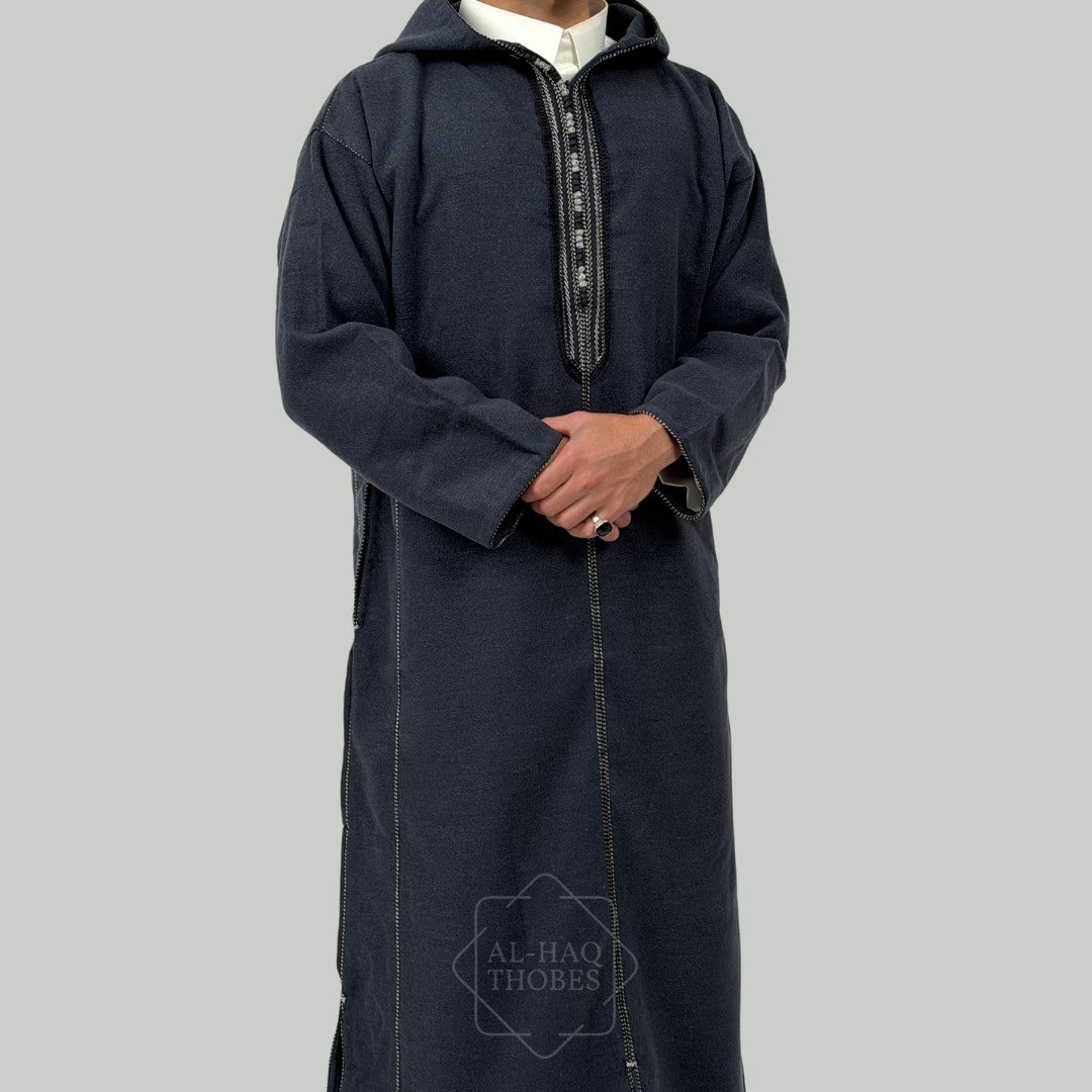 Luxury Pacific Navy Hooded Moroccan Thobe